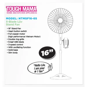 / Tough Mama NTMSF16-6S Stand Fan 5-Blade Heart Buttons Powerful Oscillating Vietnam Motor